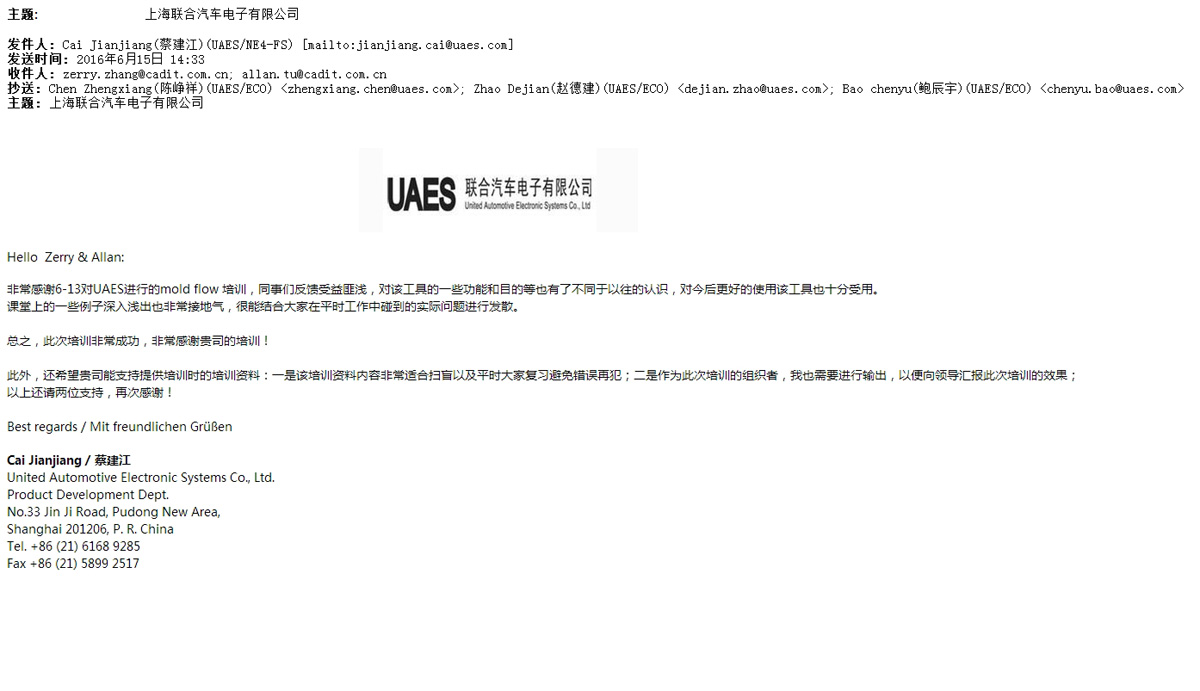 上海聯(lián)合汽車電子有限公司-感謝函