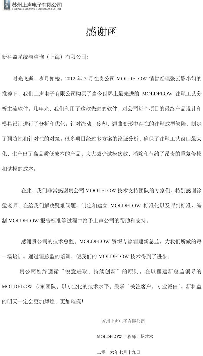 蘇州上升電子-感謝函