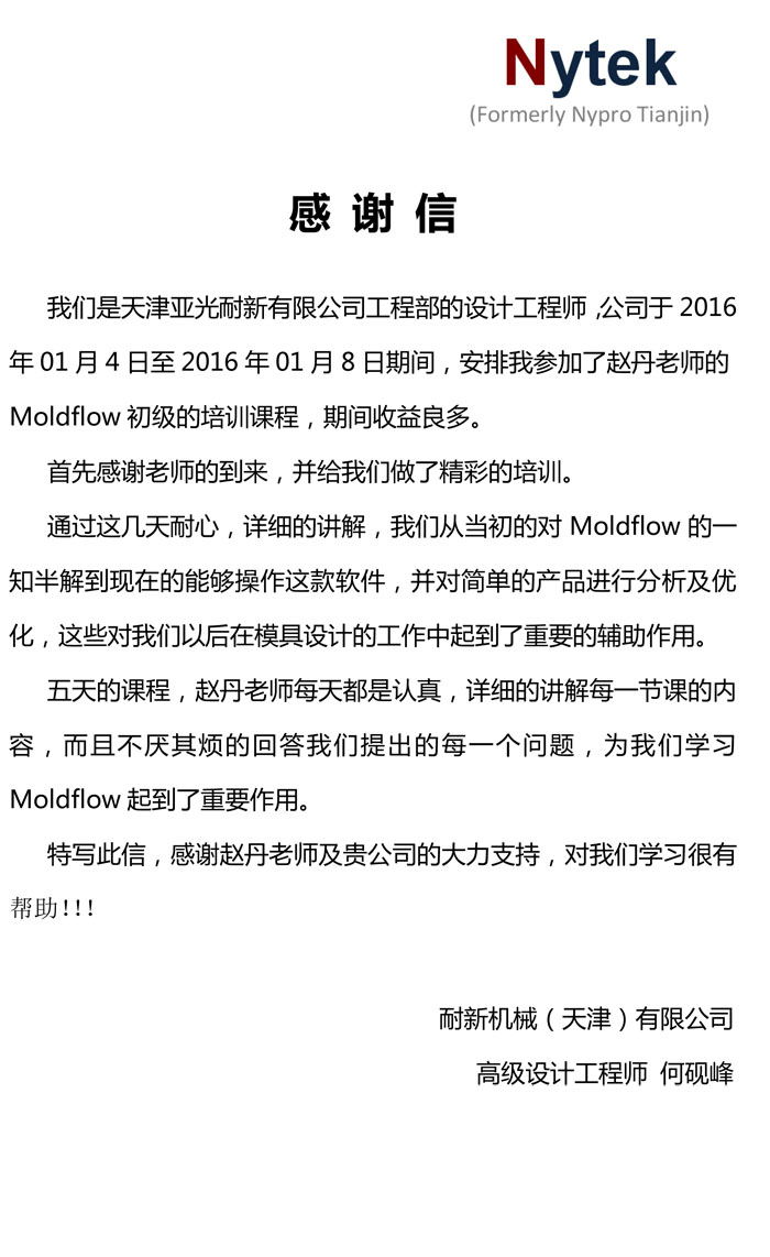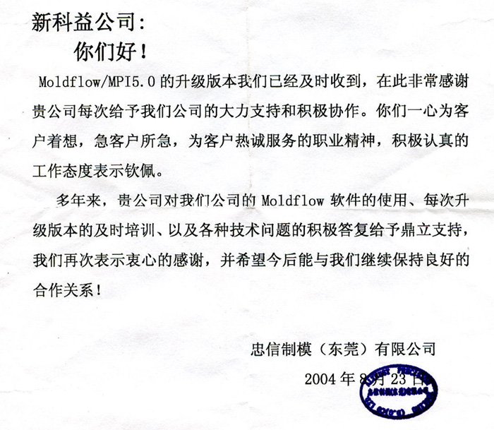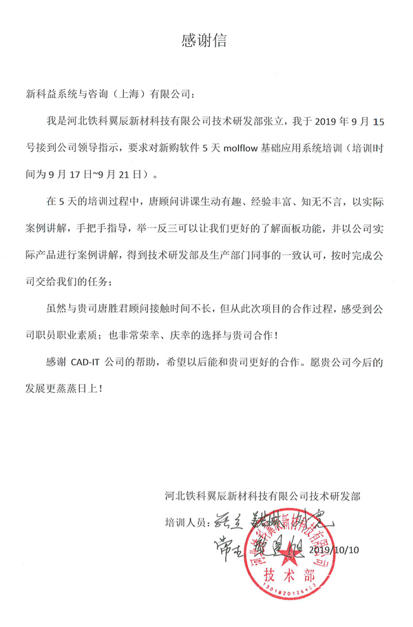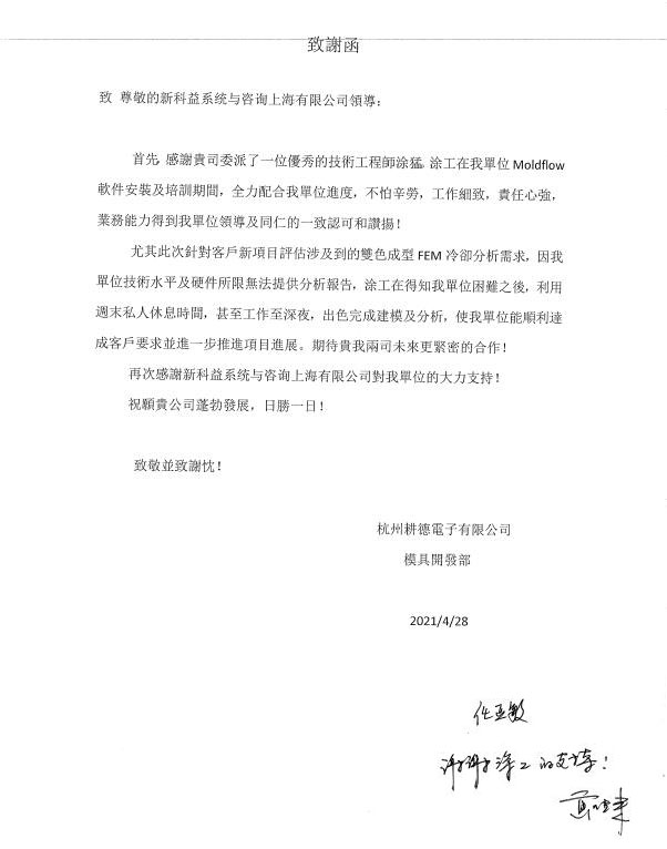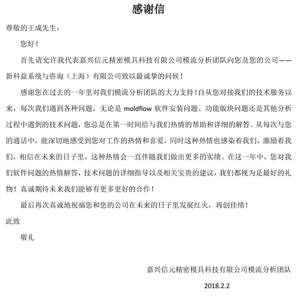嘉興信元精密模具科技有限公司-感謝函