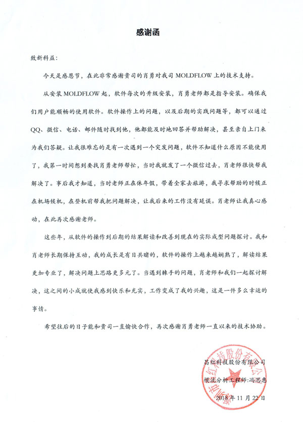 深圳昌紅科技股份有限公司-感謝函