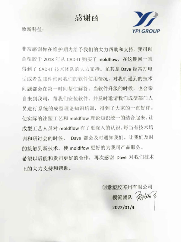 創(chuàng)意塑膠蘇州有限公司-感謝函