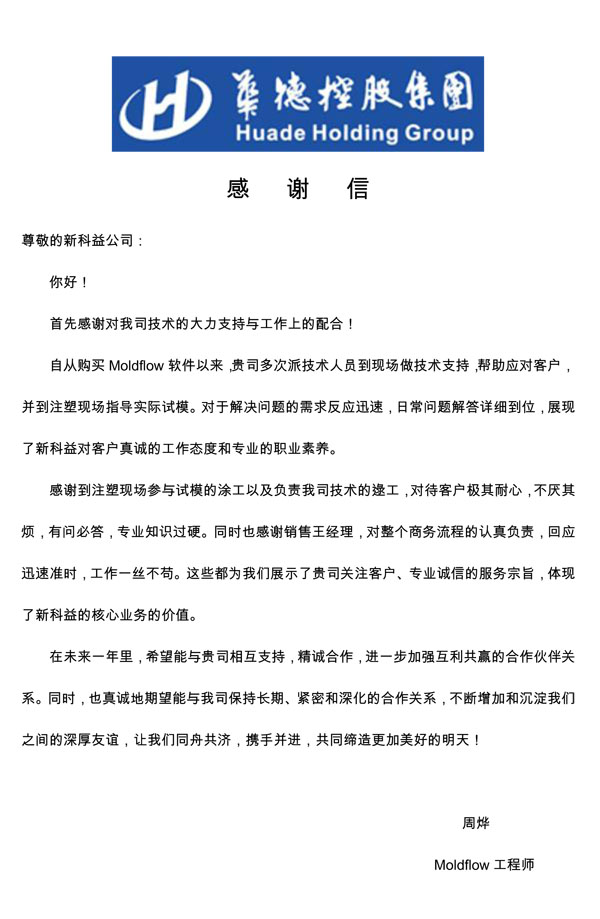 常州華威模具公司-感謝函