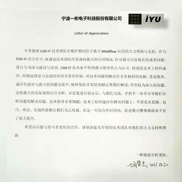 寧波一彬電子科技有限公司-感謝函
