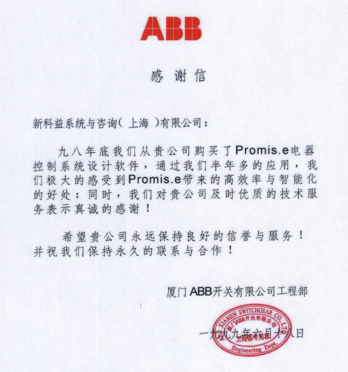 廊坊科森電器有限公司-感謝函