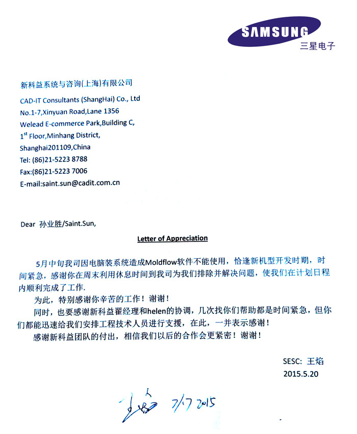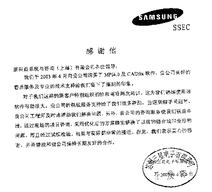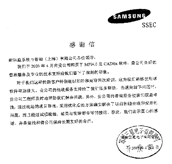 三星電腦-感謝函