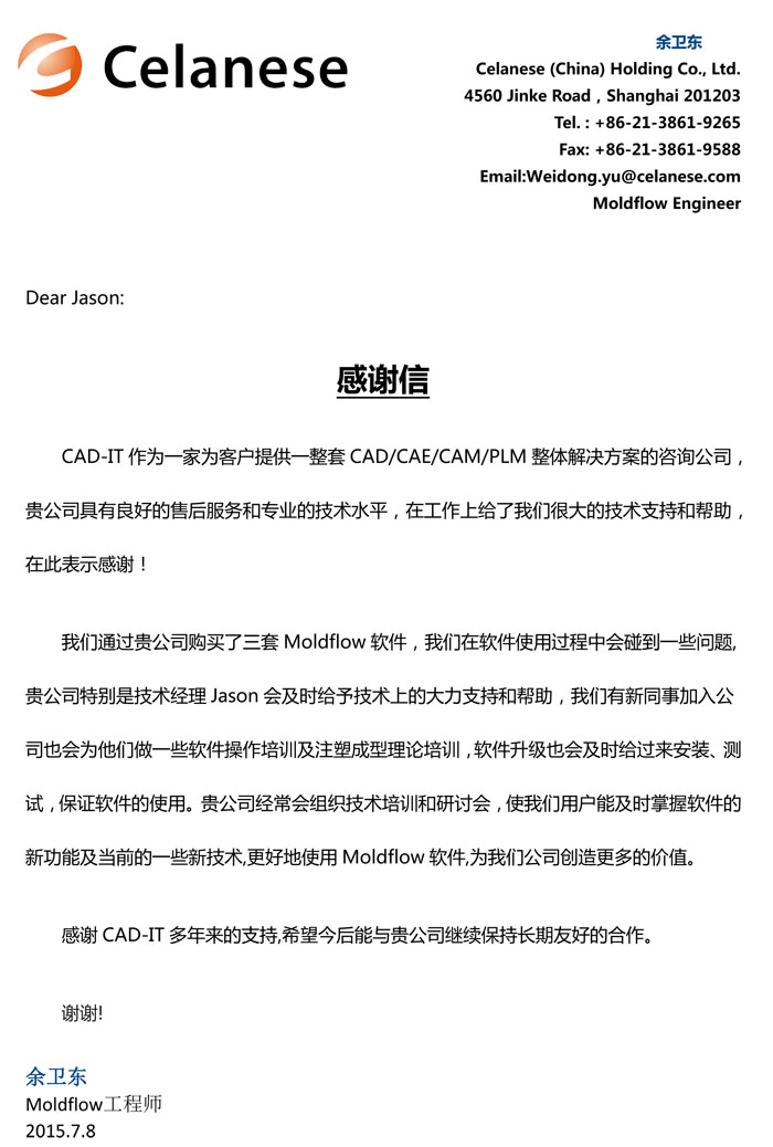 Celanese-感謝函