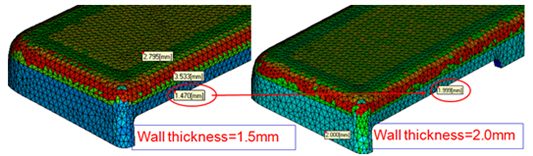 ● 結(jié)論: 產(chǎn)品變形主要是由于壁厚收縮不均導致,在客戶允許的前提下通過調(diào)整側(cè)面壁厚,變形量有了大幅度的降低。如果產(chǎn)品結(jié)構(gòu)有問題得不到及時調(diào)整,等到開模之后再通過反復改模修模發(fā)現(xiàn)沒有效果,最后才發(fā)現(xiàn)是產(chǎn)品本身問題結(jié)構(gòu)問題,這樣的浪費會很大,開發(fā)周期也會很長,所以前期的結(jié)構(gòu)確認、中期的模具設(shè)計優(yōu)化、后期的參數(shù)優(yōu)化都非常必要。 |
