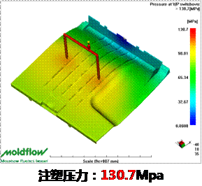 優(yōu)化澆口位置降低注塑機使用噸位 應(yīng)用Moldflow分析可以幫助優(yōu)化澆口位置,不僅提高產(chǎn)品質(zhì)量,同時能較大限度的降低生產(chǎn)成本。 下圖是打印機導(dǎo)紙組件零件,對于這類大型平板外觀件,需要很高的鎖模力;但是從成本考量噸位越小,越能夠降低生產(chǎn)成本;下圖是通過優(yōu)化澆口位置方案,不僅降低了鎖模力,而且注塑壓力也得到相應(yīng)的降低,使成型窗口變得更大。 |